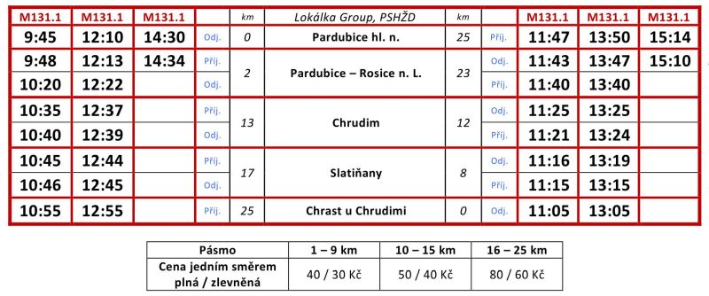 - jízdní řád motoráčků pro akci "Otevření zastávky Pardubice centrum"