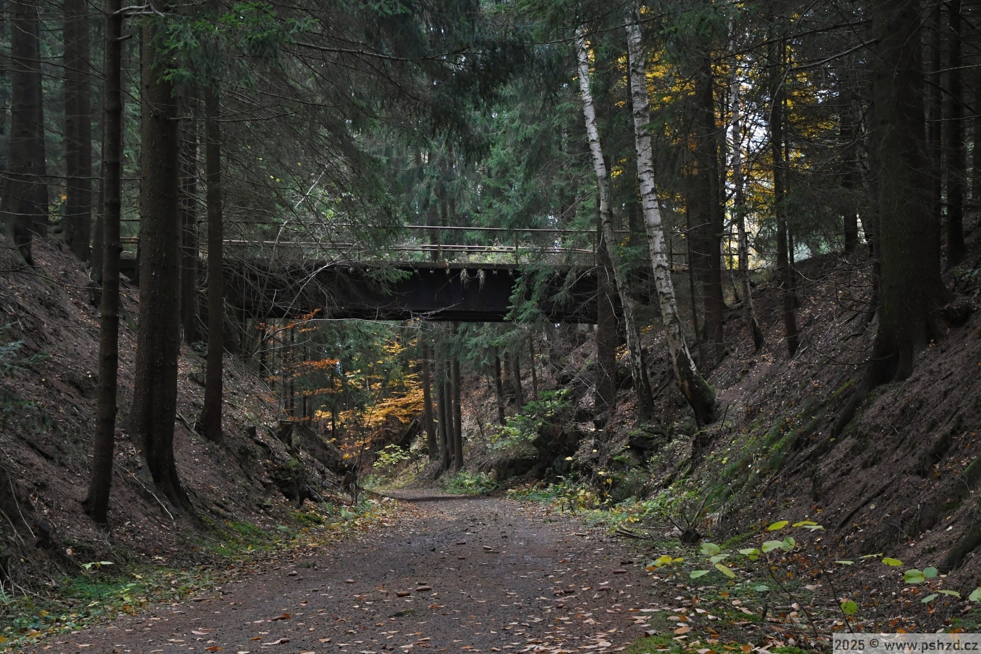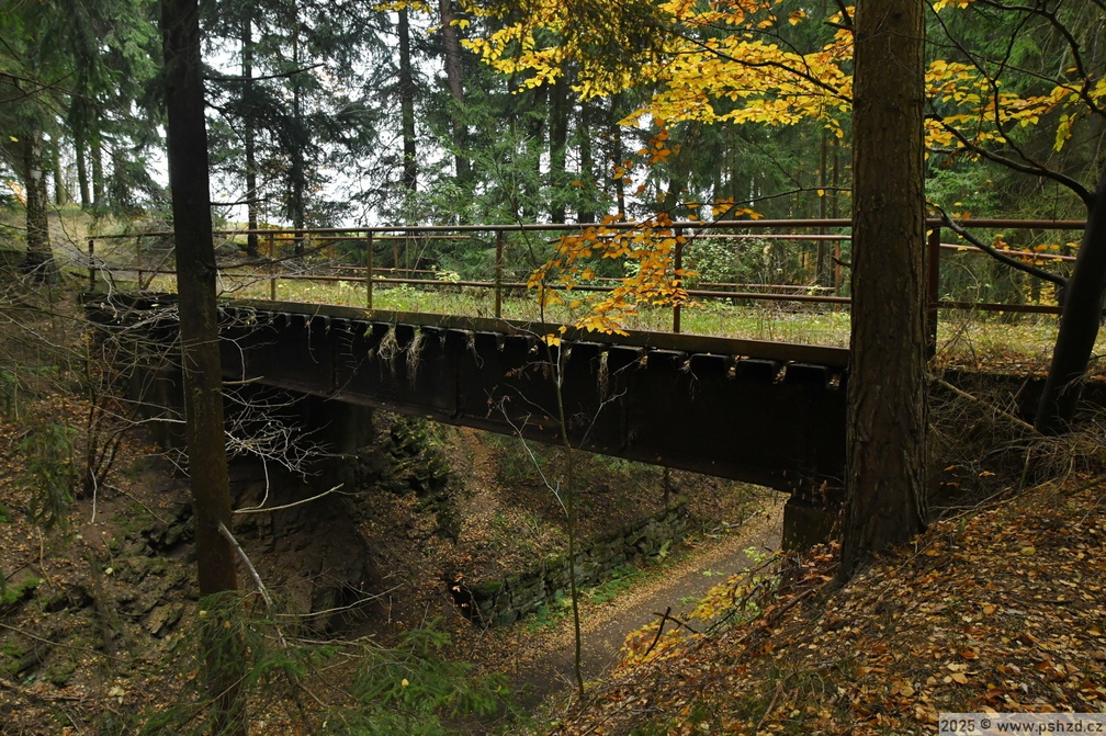 Před Sázavou je zachovaný tento most lesní cesty přes bývalou trať.