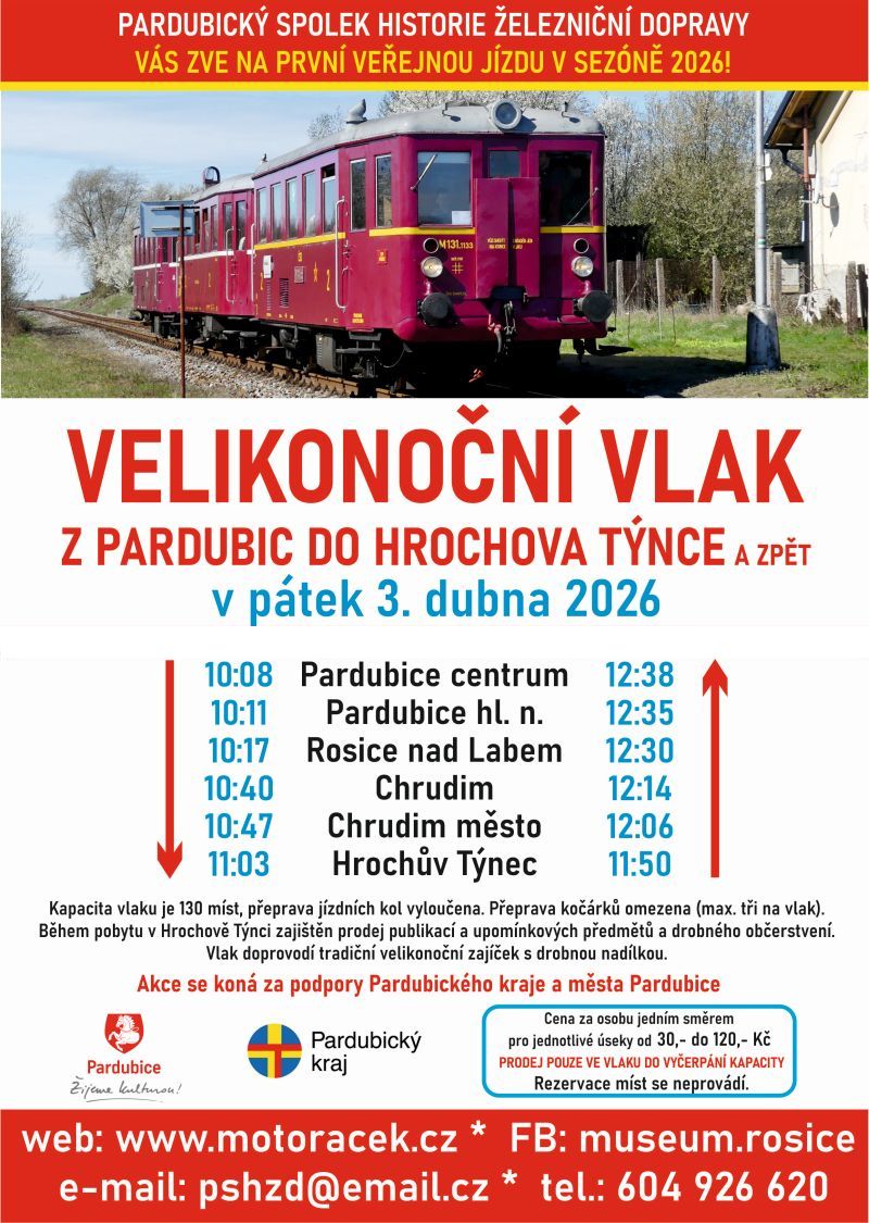 Na stránku "Nejbližší akce" je zveřejněn první plán akcí pro rok 2026. Těšit se můžete na tradiční jízdy motoráčků do Hořic, k hradu Rychmburk a podobně. Plány nám může narušit rekonstrukce a výluky v železniční stanici Hradec Králové, proto vše zatím berte jako předběžný plán.